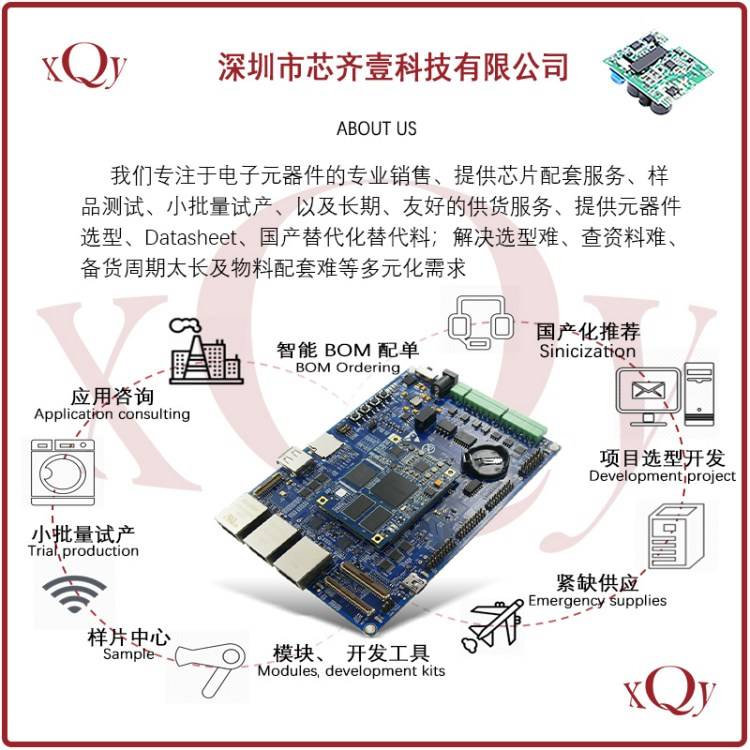 ABOUT US深圳市芯齐壹科技有限公司是专业的集成电路供应商,专注电子元器件服务与销售;与各大电子元器件厂商及代理商合作,为电子信息产业相关人员提供Datasheet、元器件的选型、解决选型难、找替代难、查资料难及配套难等问题。深圳市芯齐科技有限公司秉承着【共赢】的理念,服务于各方商贸伙伴,建立良好的合作关系。